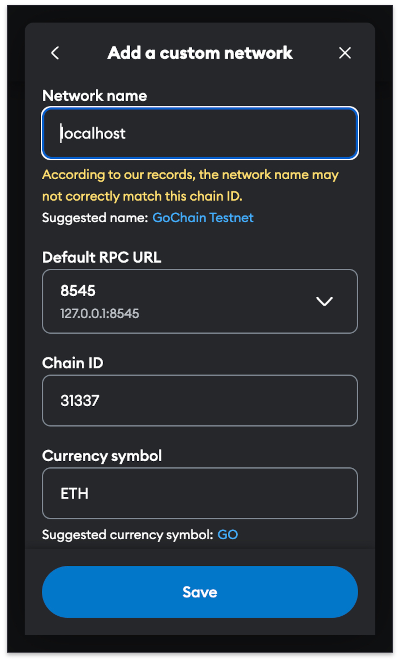 Click Metamask's Network selector dropdown, and then click the Add Network button. Click Add a network manually and then provide the following information: